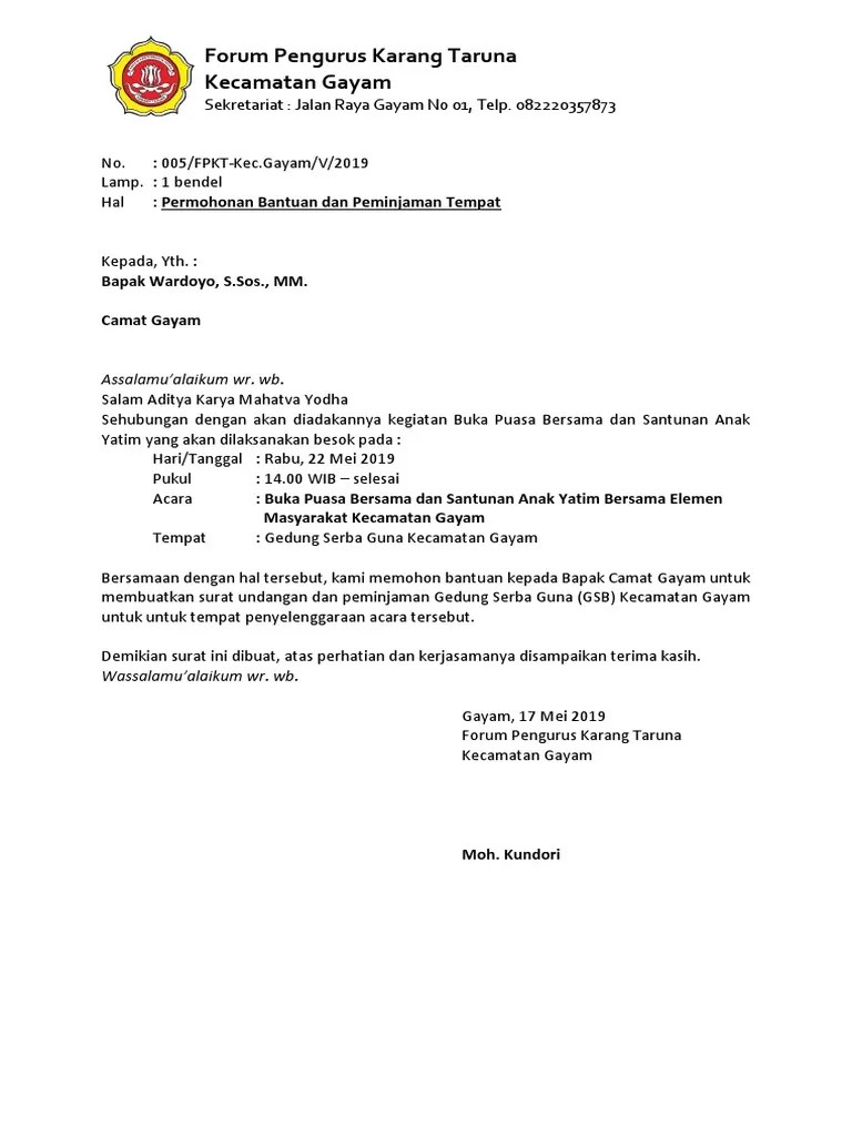 Permohonan peminjaman ruangan dan alat kepada yth . Surat peminjaman tempat adalah surat yang dibuat panitia sebuah kegiatan ataupun perusahaa yang mana digunakan untuk meminjam sebuah tempat . Saat mengadakan acara harus ada surat izin resmi, salah satunya berupa surat peminjaman gedung. Maka dengan ini kami bermaksud untuk meminjam aula gedung rimbawan & 6 contoh surat peminjaman gedung semua keperluan surat peminjaman gedung dinas 6 contoh surat peminjaman gedung semua keperluan 6 contoh .