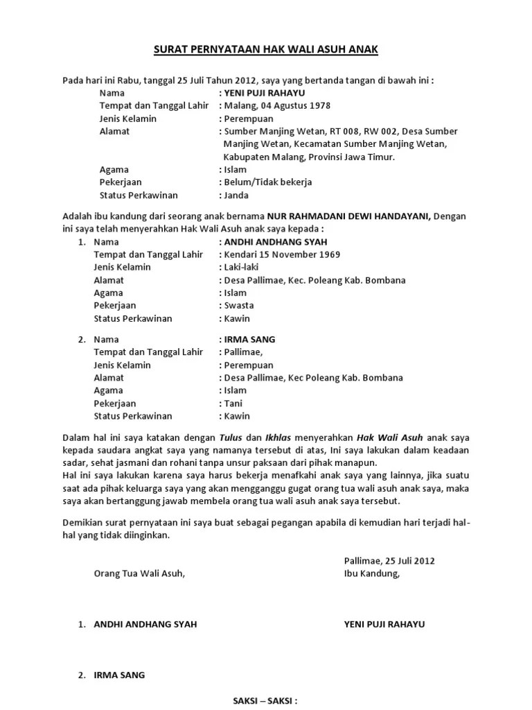 Contoh surat perjanjian hak adopsi anak baru lahir aneka contoh. Contoh surat perjanjian adopsi serah terima anak kandung baru lahir. Surat pernyataan penyerahan anak misbahul elhasany academia edu. Yang disertai penyerahan hak dan tanggung jawabnya sebagai pengasuh kepada pihak kedua, yang selanjutnya agar dapat diangkat sebagai anak asuh oleh pihak . Formulir surat pernyataan calon orang tua angkat untuk adopsi tempat tanggal lahir.